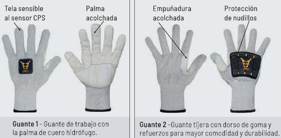 Guante especial con tejido conductor para la activación del sistema de seguridad ARVIPO CPS con el contacto en el gatillo o mediante pulsera.